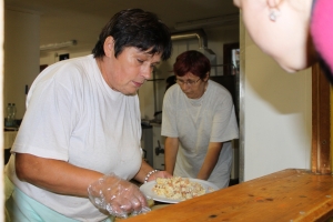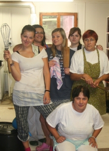 Dnes jsme se konečně po těch letech rozhodli odtajnit, proč se na tábor Svojanov všichni vracejí tak rádi. Ano, je pravda, je tu nádherné prostředí, skvělí vedoucí a parádní program, ale tím hlavním důvodem jsou prostě všechny ty lahůdky, které pro naše bříška připravují v kuchyni. Tu mají na povel šérkuchařky babča Zdena a Hanka, které mají k ruce nejšikovnější pomocnice, co si jen dokážete představit – jmenovitě Nána, Terezka, Maruška a Péťa. Každé ráno již za rozbřesku vstávají, aby nám mohly s láskou připravit snídani. Jen co ji dodělají, už na ně čeká hora špinavého nádobí, poté pytle brambor na oškrábání, hodiny pláče nad krájením cibule a obalit 150 řízků také není žádný med. Nesmíme zde také zapomenout na Šamana a Jirku, kteří jako hlavní logistici shání ty nejčerstvější potraviny. Celodenní dřina kuchařek je po zásluze odměněna naší neutuchající chválou a bouličkami za ušima. Je až neuvěřitelné, že se na nás celý den usmívají a šíří kolem sebe dobrou náladu. Tímto jim chceme za všechny z nás vyjádřit velký obdiv a naše nekonečné díky. Mňam mňam vaše nesmírně vesmírné
